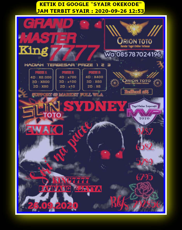 Syair sdy 26 September 2020 KODE SYAIR SGP SYAIR HK SYAIR SYDNEY 2021